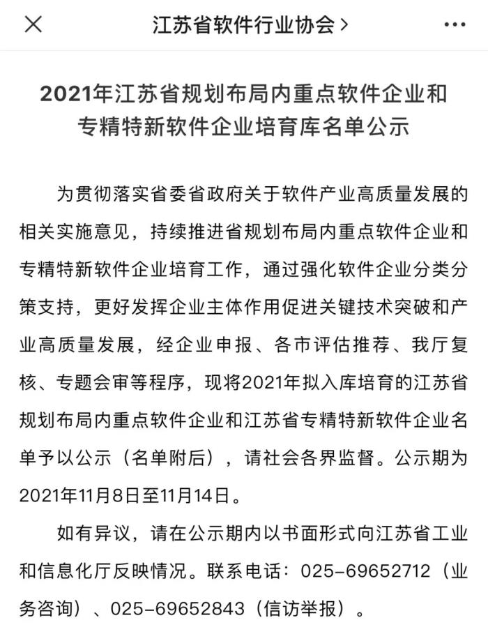 近日,2021年江蘇省規(guī)劃布局內(nèi)重點(diǎn)軟件企業(yè)和專精特新軟件企業(yè)培育庫名單公示,瑞泰信息成功上榜,再創(chuàng)佳績,祝賀!