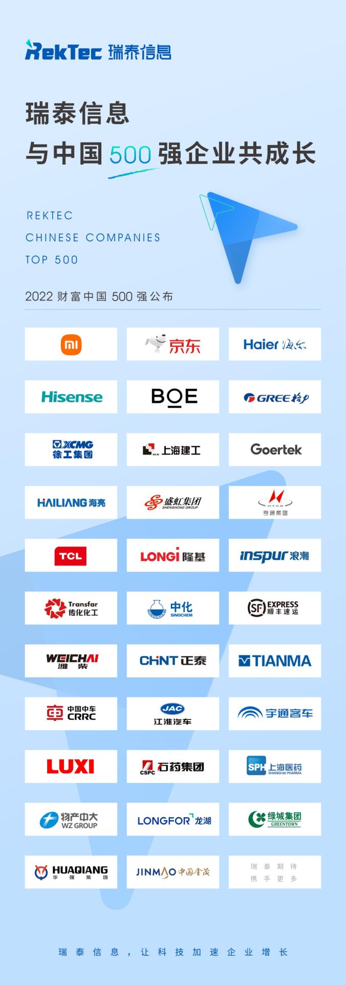祝賀!2022財(cái)富中國500強(qiáng)名單發(fā)布,瑞泰信息32家標(biāo)桿客戶上榜!